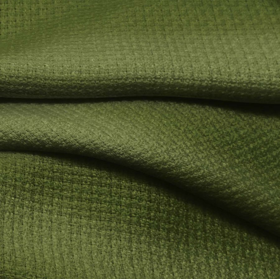 La tela base Tweed - Chanel presenta un gramaje de 420 gr/m2 y está compuesta por 100% POLIÉSTER. Su ancho es de 150 cm y se caracteriza por tener un tacto rígido. El color liso impreso en esta tela es Verde ejército, el cual se logra a través de los valores de la tinta Cyan (67), Magenta (46), Yellow (100) y Black (46), que resultan en un CMYK de 67 46 100 46. Este color secundario presenta una connotación de fuerza, estabilidad y seguridad, y se complementa de manera adecuada con tonos neutros como el beige y el blanco, así como con tonos más oscuros como el marrón y el negro.