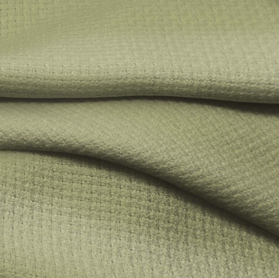 La tela base del tweed Chanel presenta una composición de 100% poliéster con un gramaje de 420 gr/m2 y un ancho de 150 cm. Su color liso impreso es verde helecho, reflejado en su CMYK con valores de 37 en cyan, 25 en magenta, 56 en yellow y 7 en black. Este color es simbólicamente representativo de la naturaleza, la frescura y el equilibrio, y técnica y visualmente combina a la perfección con tonalidades neutras como el gris y el blanco, así como con tonos tierra como el marrón y el beige.