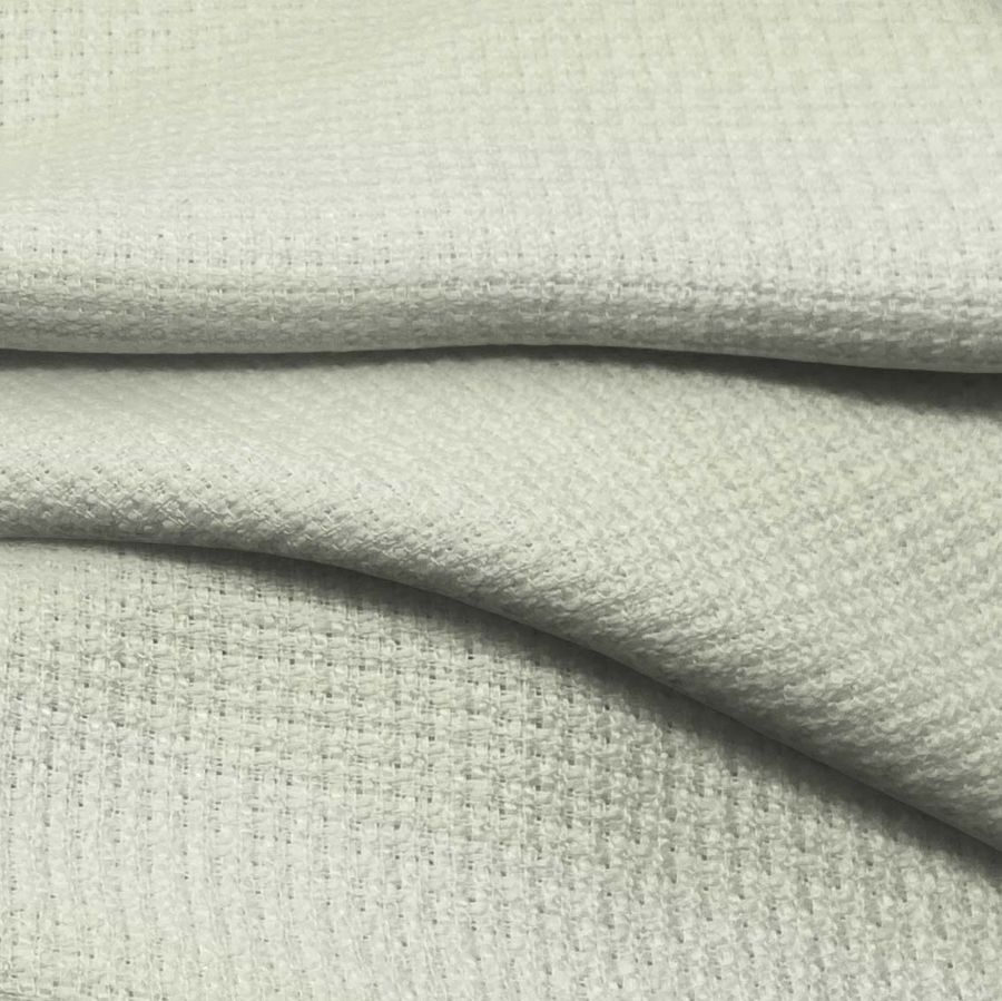 La tela base es un Tweed de Chanel con una composición 100% poliéster, un gramaje de 420 gr/m2 y un ancho de 150 cm. El color impreso es Crudo con un tono de LightGoldenRodYellow, siendo la tinta Cyan de 10, Magenta de 2 y Yellow de 22, dando un resultado CMYK de 10 2 22 0. Este color impreso combina perfectamente con tonos oscuros y suaves, como gris, negro, azul oscuro y rosa palo.