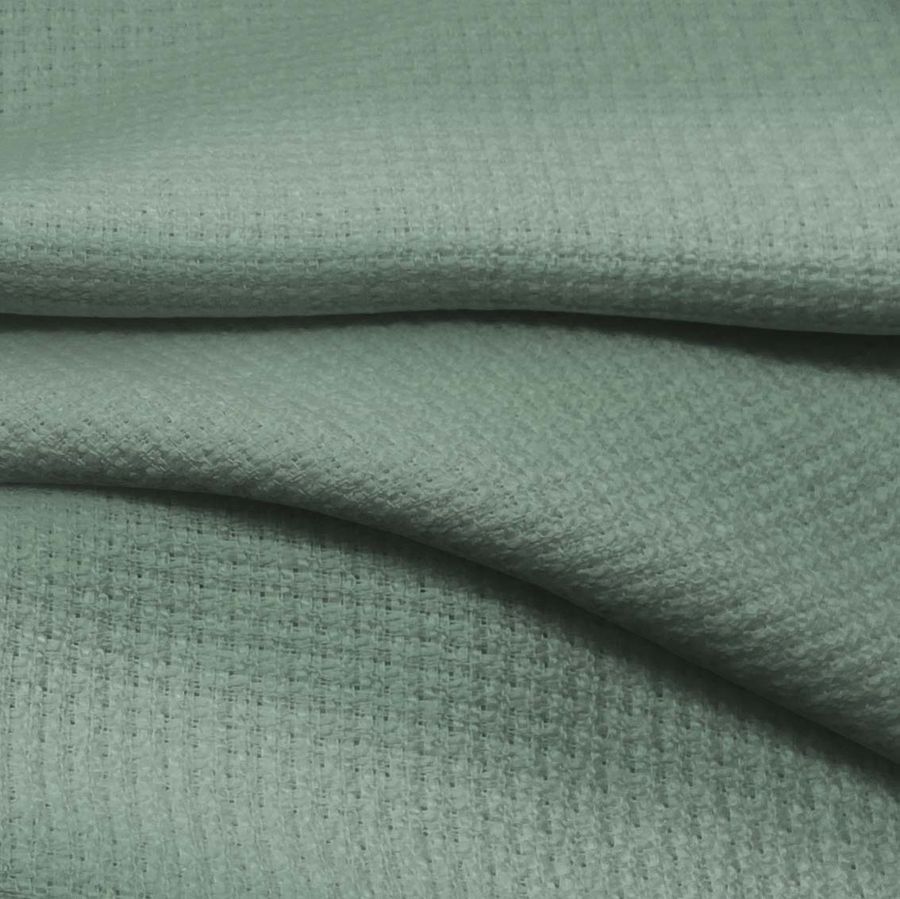 La tela base del tejido es un tweed de 420 gr/m2 100% poliéster, de textura rígida, con un ancho de 150 cm. El color liso impreso en la tela es un verde camuflaje, con un CMYK de 55 29 48 11. Este color nos evoca a la naturaleza y a la sensación de ocultación que busca un camuflaje. Combina perfectamente con tonos marrones y beige, generando una armonía terrosa.