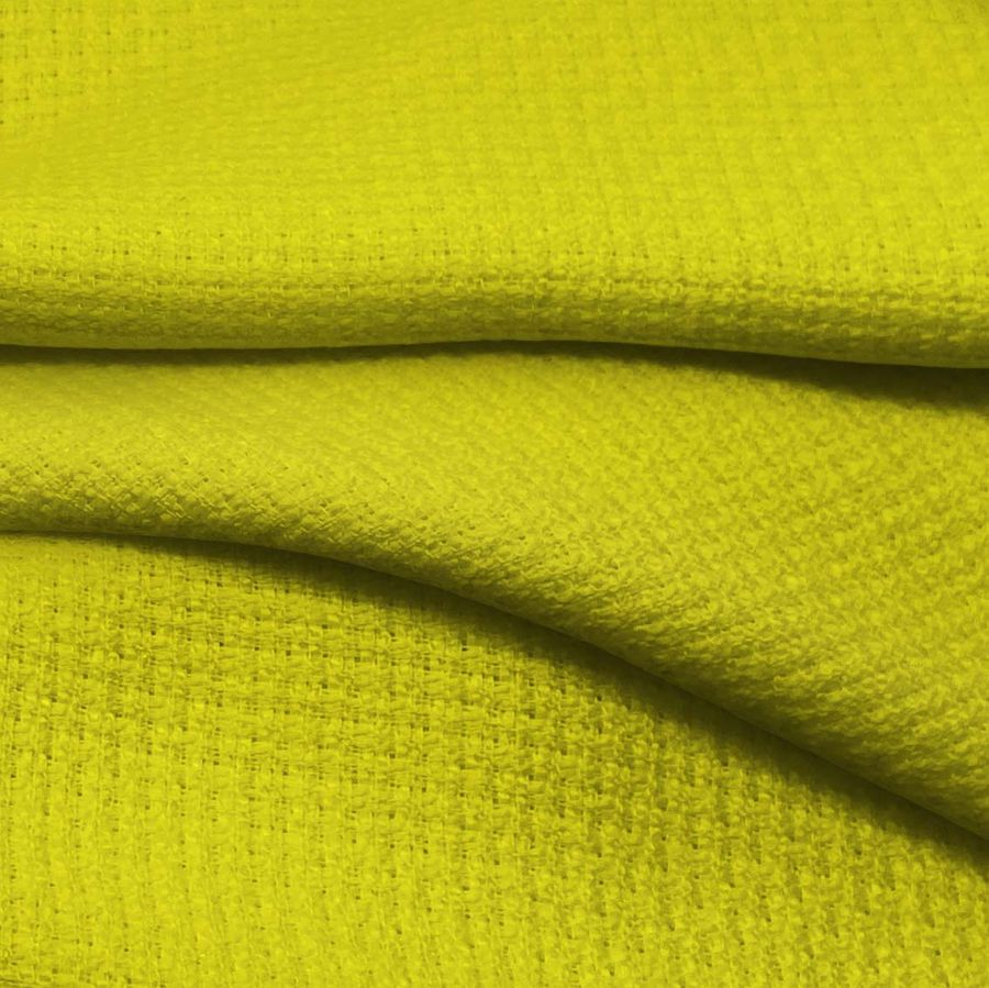 La tela base, Tweed - Chanel, está compuesta en un 100% de poliéster, con un gramaje de 420 gr/m2 y un ancho de 150cm. El color liso impreso es Amarillo Plátano, con valores de 21 de tinta Cyan, 6 de tinta Magenta, 94 de tinta Yellow y 0 de tinta Black, lo que se traduce en un CMYK de 21 6 94 0. Este color transmite energía, calidez y luminosidad, siendo ideal para proyectos de moda y decoración que busquen destacar en su imagen. Combina muy bien con otros elementos de tonalidades cálidas, como los marrones, verdes y rojos.