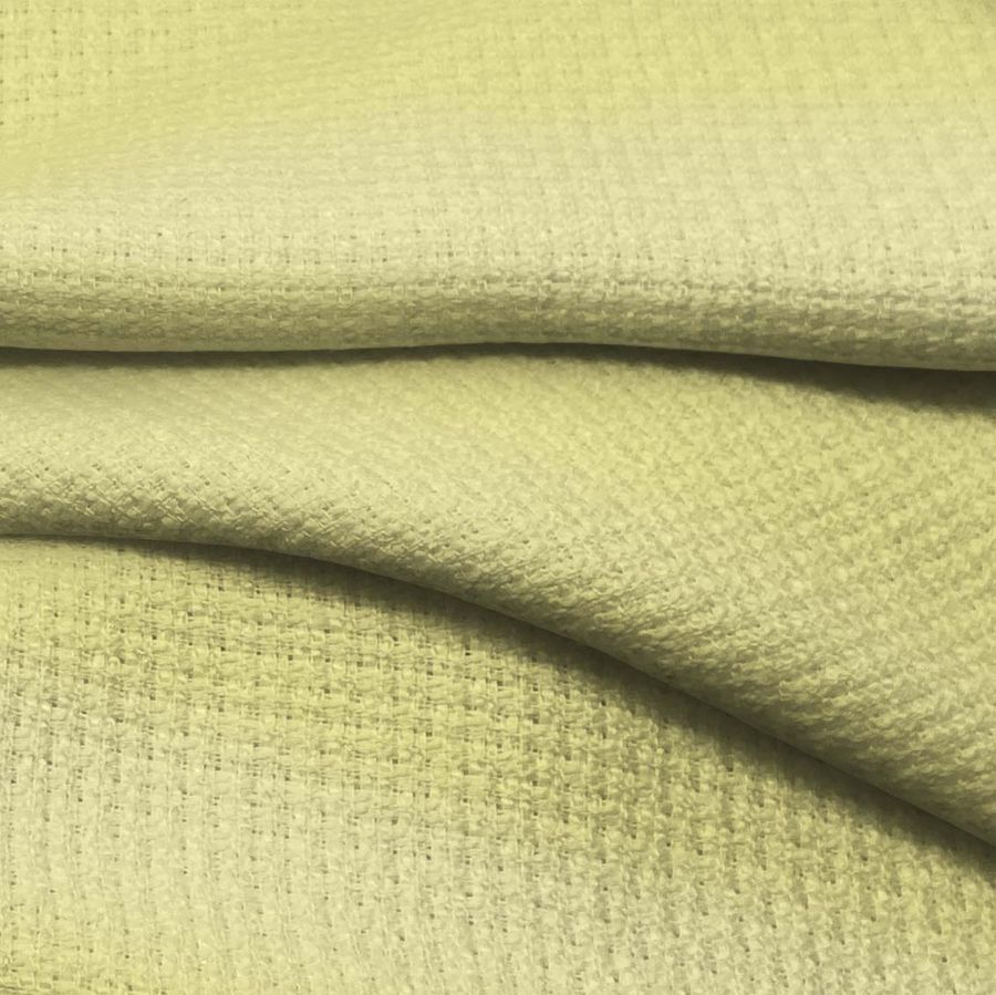 La tela base es el Tweed - Chanel, compuesta por un 100% de poliéster con un gramaje de 420 gr/m2 y un ancho de 150cm. El color secundario de este tejido es el amarillo maíz, que transmite vitalidad, energía y optimismo. Es un color que combina perfectamente con otros tonos tierra, tonos azules, verdes y grises oscuros. El tejido está impreso con un color liso solo en una cara a través de impresión digital textil.