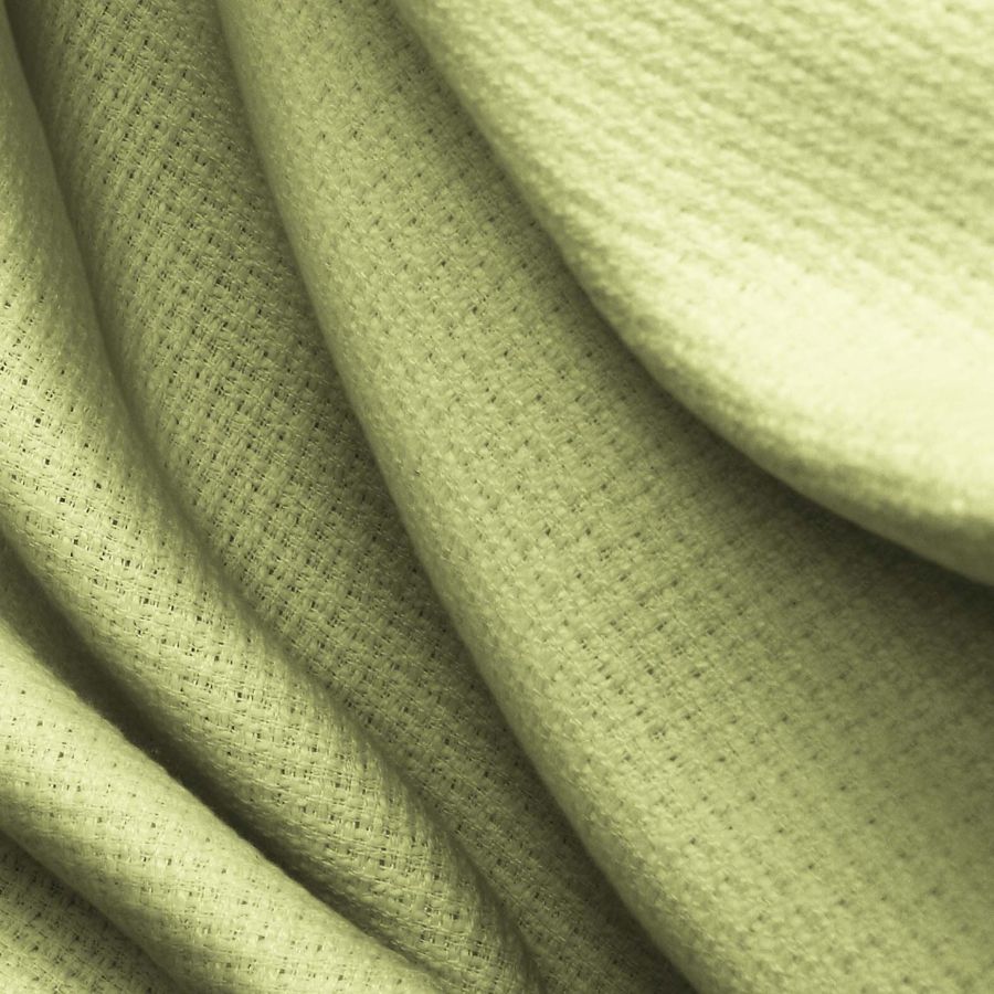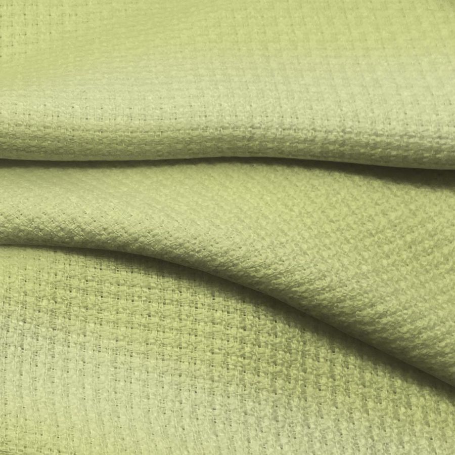 La tela base, llamada Tweed - Chanel, es un tweed 100% poliéster de 420 gr/m2 con un ancho de 150 cm. Su color liso impreso es un verde pastel con un CMYK de 22 2 57 0 y un acabado rígido al tacto. Este color simboliza la frescura y la naturaleza, y combina muy bien con tonos tierras y marrones.