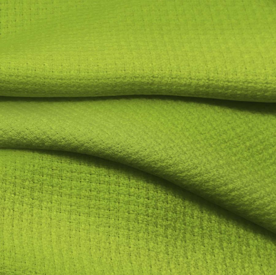 La tela base Tweed - Chanel es un tejido de tweed compuesto al 100% de poliéster de 420 gr/m2 y con un ancho de 150 cm. El color liso impreso en verde pistacho se obtiene gracias a una tinta cyan de 49, una tinta magenta de 8, una tinta yellow de 94 y ninguna tinta black, lo que resulta en un CMYK de 49 8 94 0. Este color hace referencia a frescura, naturaleza y juventud. Combina muy bien con colores neutros como el blanco o el negro, así como con tonos similares como el verde lima o el amarillo claro.