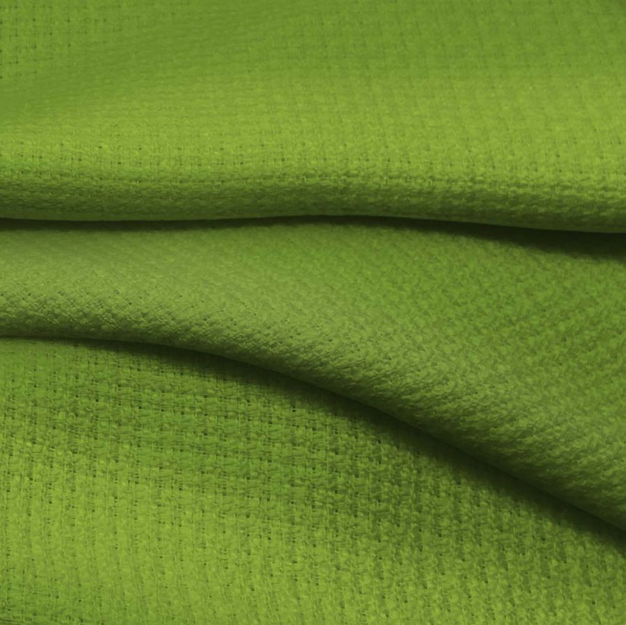 La tela base es el Tweed - Chanel, compuesta por 100% POLIÉSTER, con un peso de 420 gr/m2 y un ancho de 150 cm. El color liso impreso es Verde OliveDrab, con un CMYK de 62 24 98 8. Este color tiene una simbología que la hace representativa de la naturaleza y la vida, transmitiendo sensaciones de calma y tranquilidad. Se combina muy bien con colores terrosos, como beige y marrón, y con otros verdes más intensos.