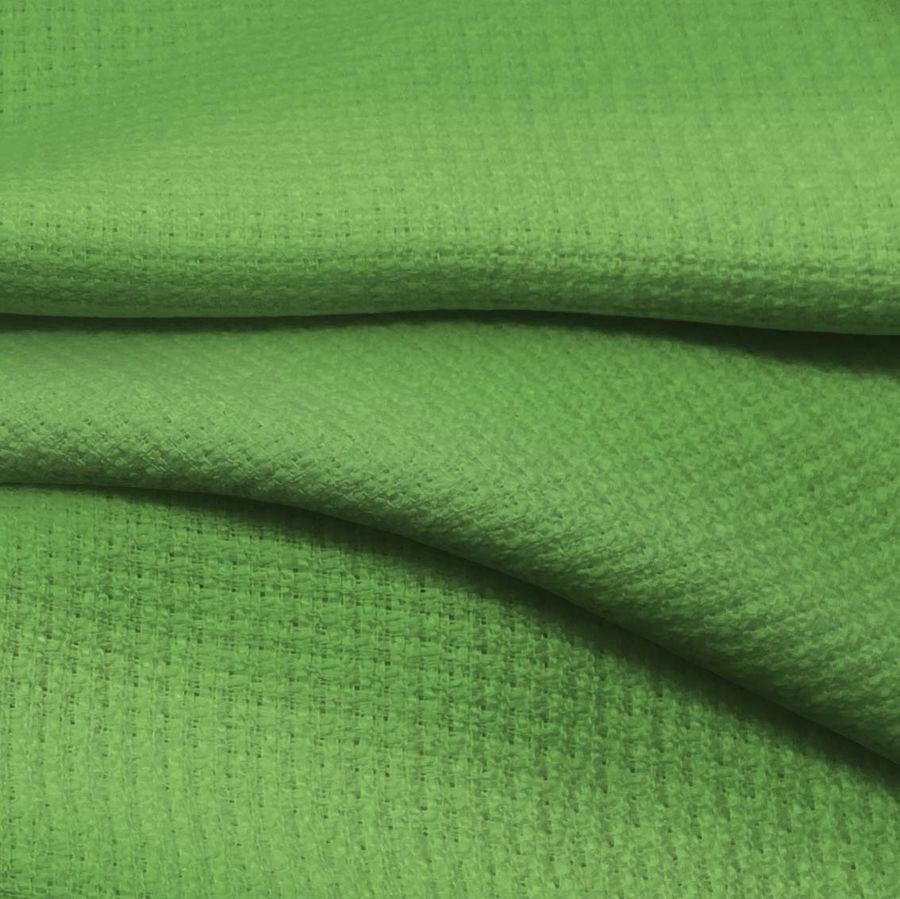 El Tweed - Chanel es una tela de Tweed con una composición del 100% de poliéster, con un gramaje de 420 gr/m2 y un ancho de 150 cm. Su color liso impreso es un verde alga, con un CMYK de 63 11 84 1, donde destaca su tinta amarilla en gran parte. El color verde alga simboliza la naturaleza, la calma y la prosperidad. Técnicamente, es un color terciario que se forma a partir de la mezcla de azul, amarillo y gris. Es un color que combina muy bien con tonos neutros como blancos y grises, y tonos más vibrantes como naranjas y rojos.