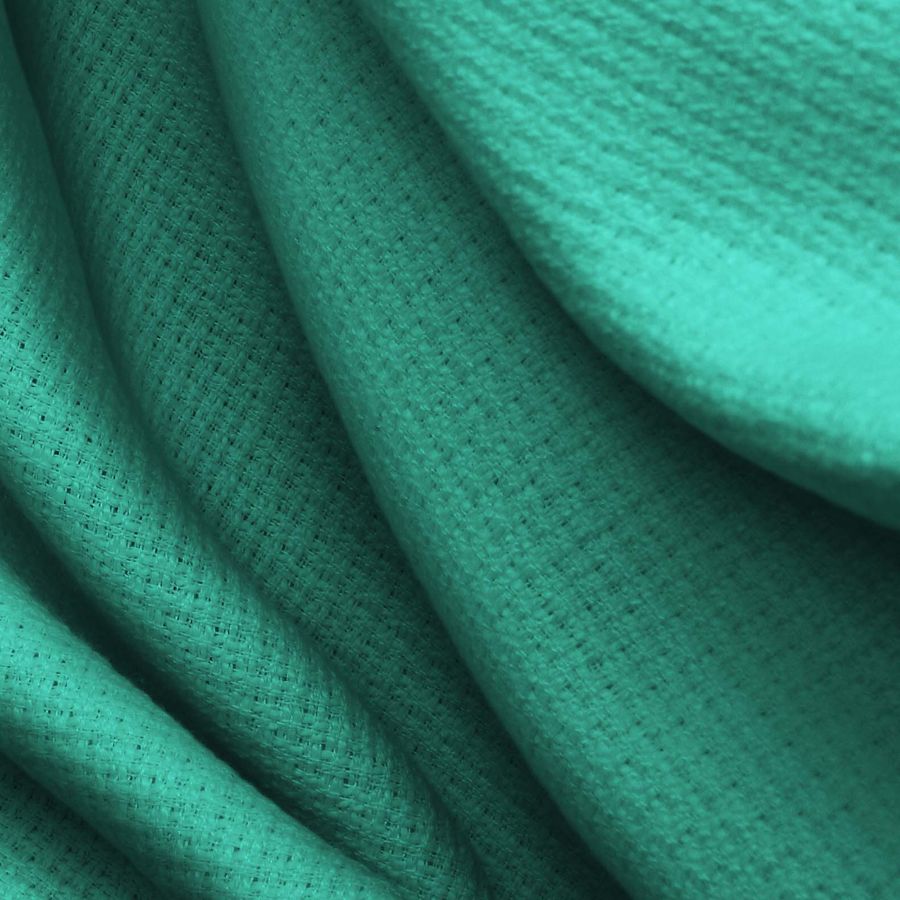 La tela base es un Tweed - Chanel 100% poliéster, con un gramaje de 420 gr/m2 y un ancho de 150 cm. El color liso impreso es un Verde Menta, con una combinación de tinta cian 75, magenta 15, amarillo 55 y negro 2, con un CMYK de 75 15 55 2. Este color transmite una sensación de frescura, calma y tranquilidad, con un toque de elegancia y delicadeza. Combina excelentemente con tonos rosa pastel, blanco, gris y negro.