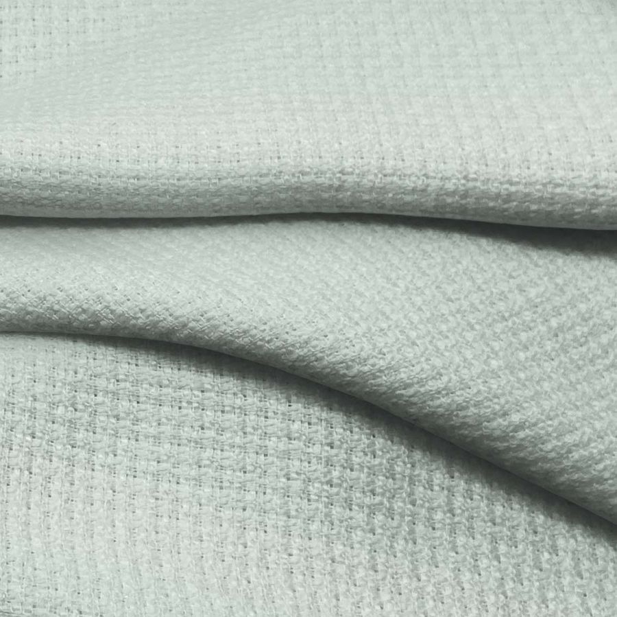 La tela base es Tweed - Chanel, compuesta de 100% poliéster, con un gramaje de 420 gr/m2 y un ancho de 150cm. El color liso impreso es verde con un toque de rosa claro, obtenido a través de la tecnología de sublimación con tinta Cyan de 20, Magenta de 2, Yellow de 18 y Black de 0, con un perfil de color en CMYK de 20 2 18 0. El color transmitido simbólicamente representa la frescura, juventud y vitalidad, mientras que técnicamente es una tonalidad complementaria y vibrante, que se combina muy bien con colores como el blanco, negro, marrón y rosa. Cabe destacar que este tejido está impreso con el color liso a una sola cara por impresión digital textil, no siendo un tejido tintado sino impreso por una sola cara.