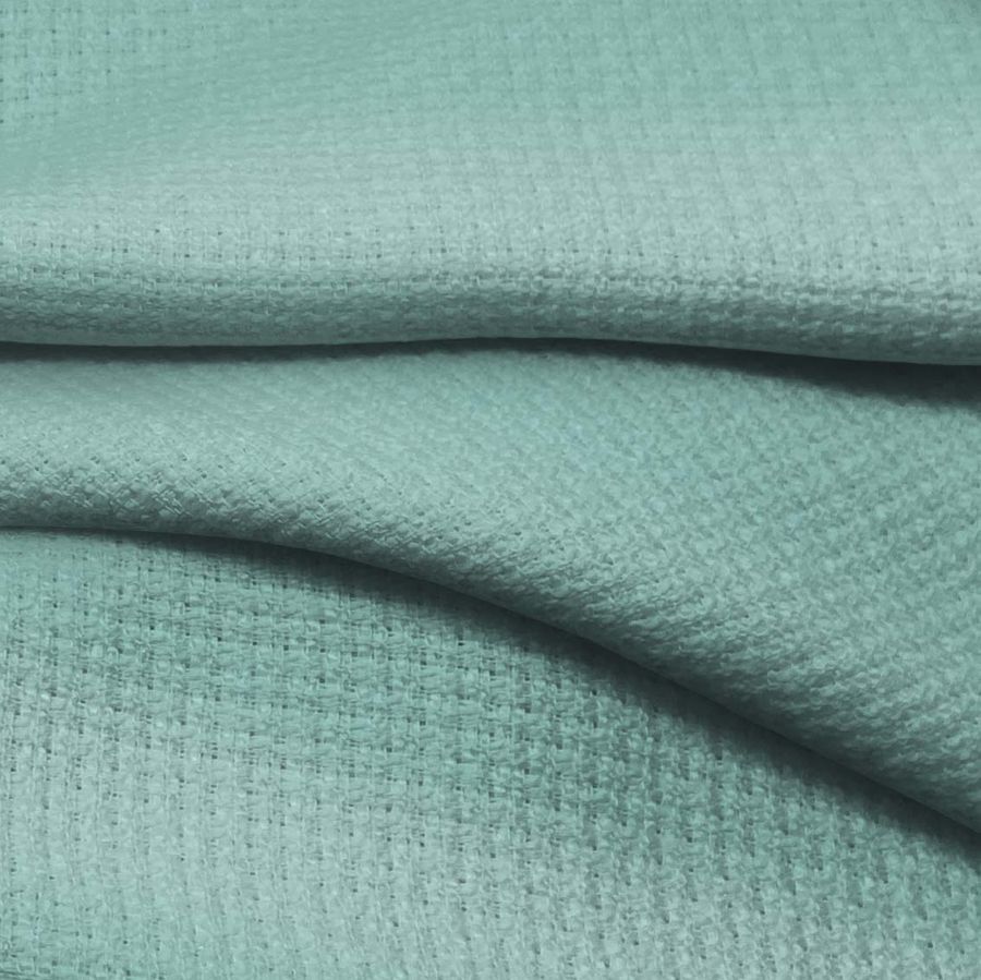 La tela base del tejido es un Tweed de composición 100% poliéster con un gramaje de 420 gr/m2 y un ancho de 150 cm. Su color liso impreso es verde-azul-verde, con un CMYK de 50 10 32 0. Este color refleja una combinación de tonos verde y azul que le otorgan un matiz fresco y vibrante. En particular, el verde aporta un sentimiento de armonía y equilibrio, mientras que el azul traslada una sensación de tranquilidad y serenidad. Este color secundario combina muy bien con tonos neutros como el blanco y el negro, así como con otros colores más vivos, como el rosa o el amarillo.