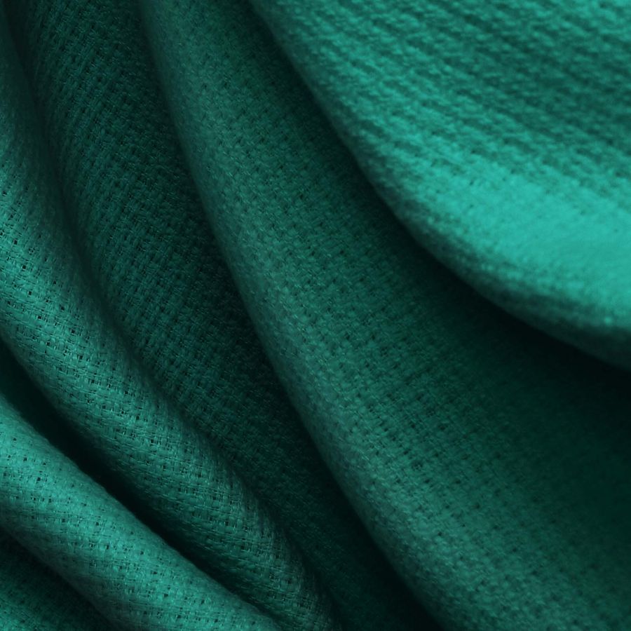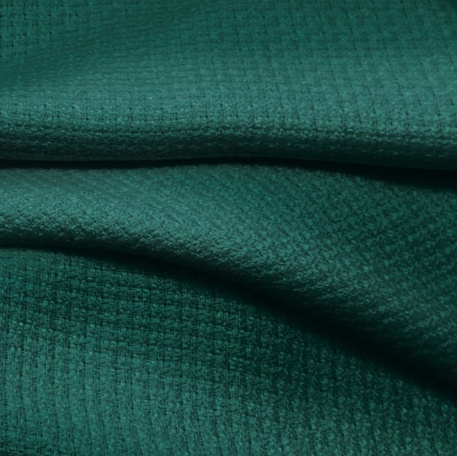 La tela base es un tweed de poliéster con un gramaje de 420 gr/m2 y una anchura de 150 cm. El color liso impreso es un verde teal profundo, reflejado en su CMYK de 92 44 69 54. Este color simboliza la confianza, calma y equilibrio, siendo un tono ideal para la moda de invierno. Combina especialmente bien con colores neutros como el blanco, gris y negro, resaltando así el color principal.