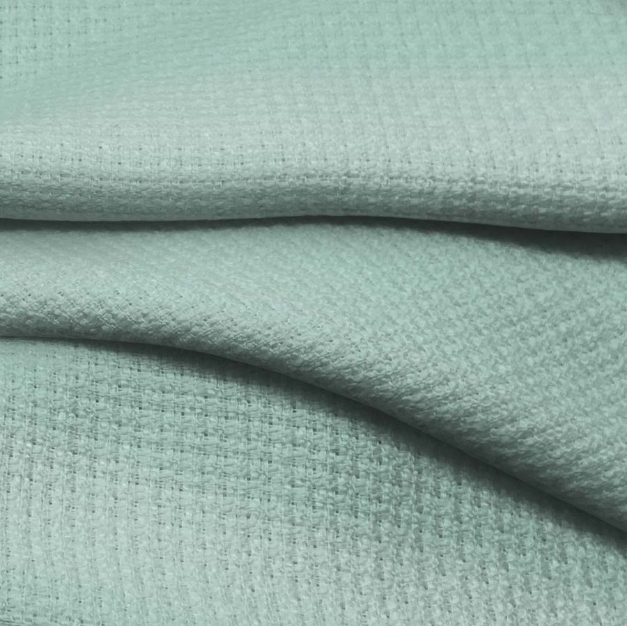 La tela base es el Tweed - Chanel, compuesta al 100% de poliéster, con un gramaje de 420 gr/m2 y una anchura de 150 cm. El color liso impreso es Verde-Azul Verde, con una tinta Cyan de 40, una tinta Magenta de 7, una tinta Yellow de 29 y una tinta Black de 0, dando un resultado de CMYK de 40 7 29 0. Este color se puede describir como un tono verdoso con matices azules y verdes, y combina bien con colores como el beige, marrón, blanco o negro.