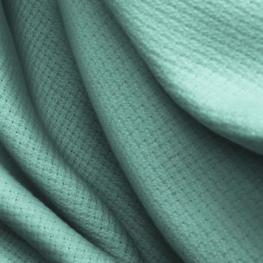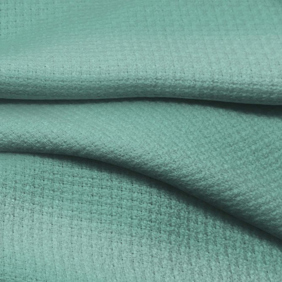 La tela base de este producto es un Tweed - Chanel compuesto por 100% poliéster, con un gramaje de 420 g/m2 y un ancho de 150 cm. El color liso impreso es un verde-azul verdoso con un CMYK de 57 13 40 0. Este tono simboliza la armonía y la tranquilidad, a la vez que transmite una sensación de frescura y vitalidad. Además, este color combina perfectamente con tonos tierra, beige y marfil, así como con otros tonos verdes y azules.