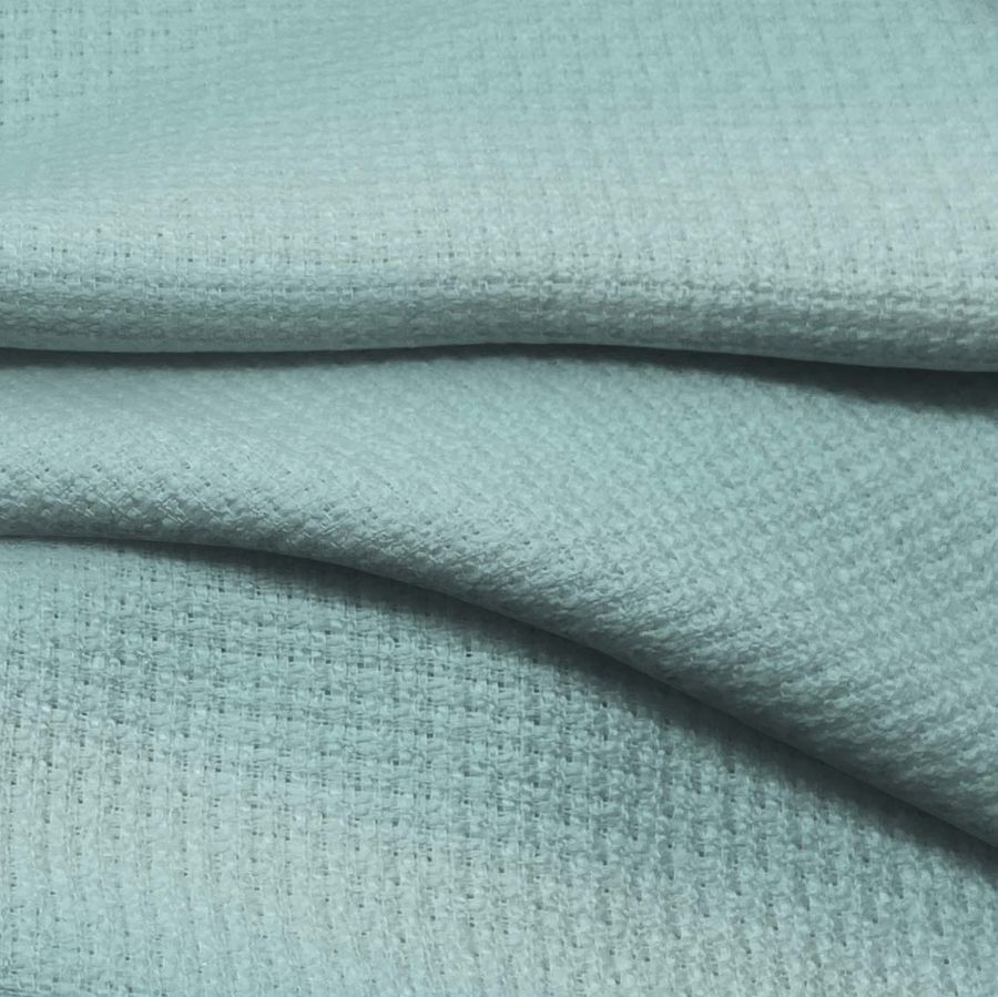 La tela base Tweed-Chanel está compuesta al 100% por poliéster. Su gramaje de 420 gr/m2 y ancho de 150 cm la convierten en una tela resistente y duradera. El color liso impreso es verde menta, con una mezcla CMYK de 43% cyan, 8% magenta, 25% yellow y 0% black. Este color sugiere frescura, tranquilidad, relajación y delicadeza. Combina especialmente bien con rosas suaves, azules claros y grises.