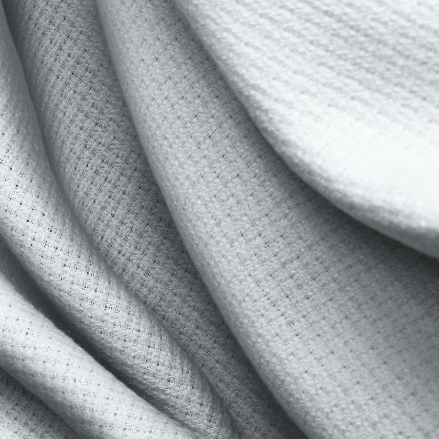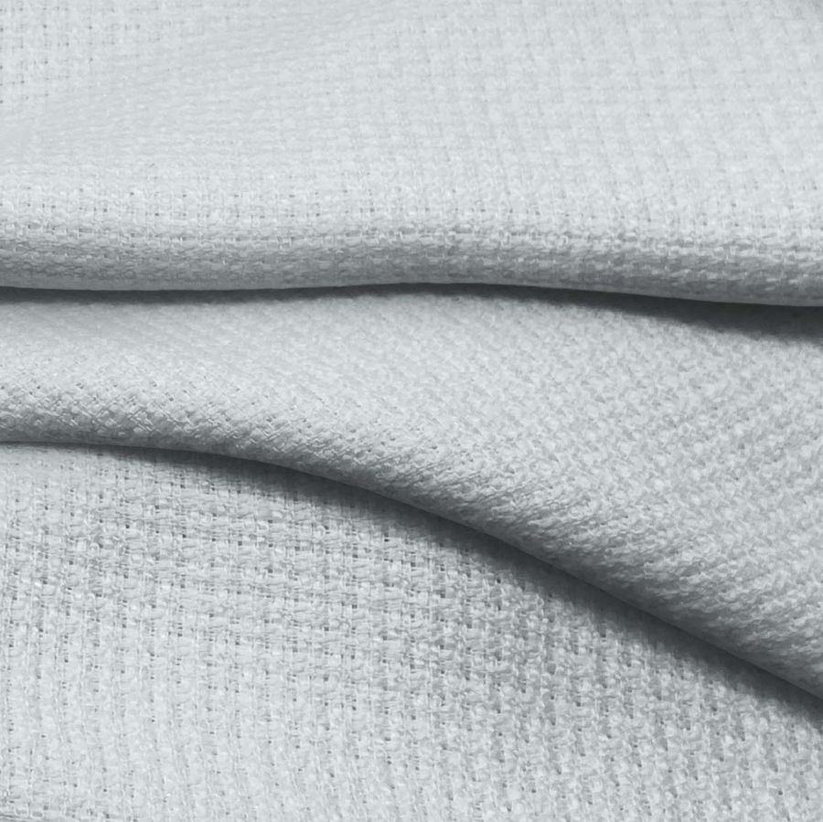 La tela base del tejido Tweed - Chanel es un tweed de poliéster con un gramaje de 420gr/m2 y un ancho de 150cm. El color impreso es un tono azul agua (CMYK: 15 3 8 0) que transmite tranquilidad y frescura, combinando el azul, el verde y un toque de gris. Este color se combina especialmente bien con tonos beige, crema y gris claro. Es importante destacar que el tejido está impreso con el color liso a una sola cara por impresión digital textil, lo que permite una gran precisión en la reproducción del diseño.