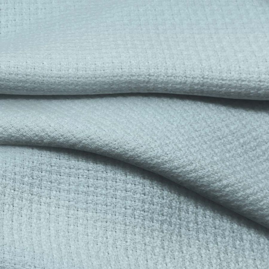 El Tweed Chanel es una tela tweed de poliéster con un gramaje de 420 gr/m2 y un ancho de 150 cm. El color liso impreso es un suave tono de azul llamado PowderBlue, con una mezcla de tintas CMYK donde el cian tiene una intensidad del 32%, el magenta del 5% y el amarillo del 13%.