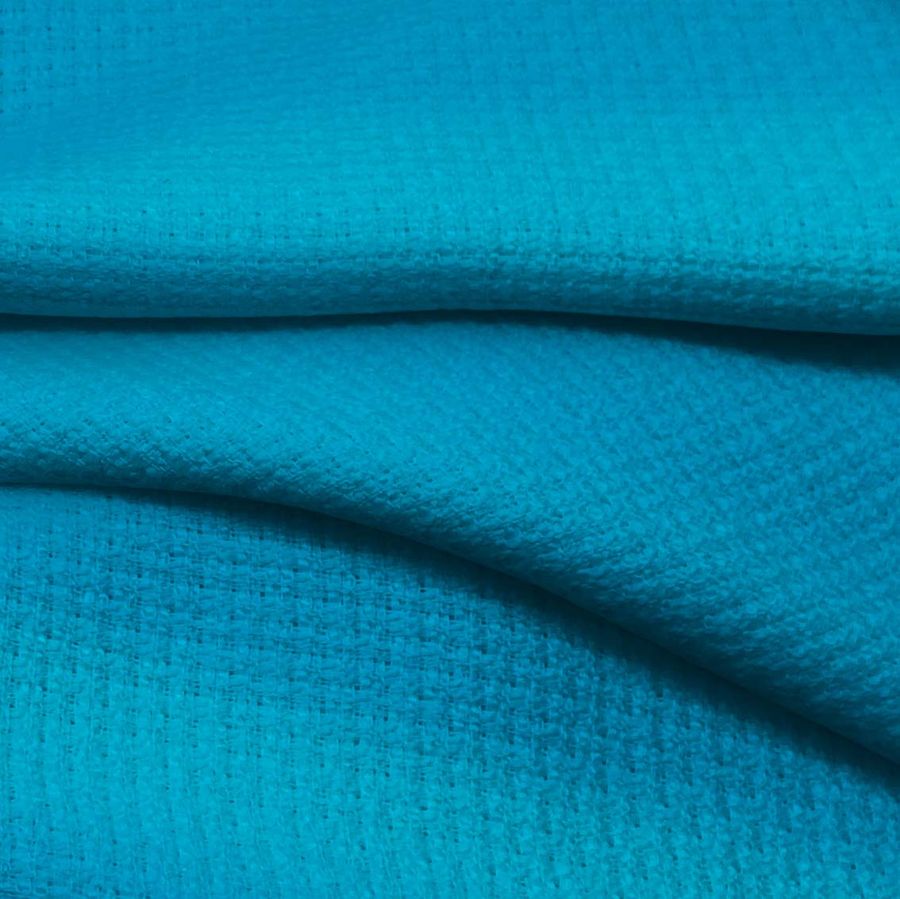 La tela base Tweed – Chanel es un tejido de 100% poliéster con un gramaje de 420 gr/m2 y un ancho de 150 cm. Su color liso impreso es azul hiedra, con un CMYK de 80 26 12 1, lo que le confiere un tono profundo y elegante. Este color secundario combina especialmente bien con tonos claros y neutros, como el blanco, el gris o el beige.