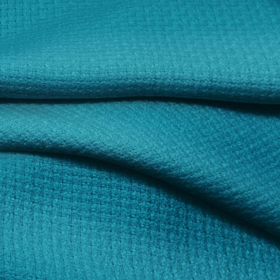 La tela base del producto es la Tweed - Chanel, con un peso de 420 gr/m2 y una composición de 100% poliéster. El ancho de la tela es de 150 cm y sus cuidados incluyen no blanquear, temperatura máxima de 30ºC, admite limpieza en seco (excepto tricloroetileno), planchado a temperatura fría y no secar con secadora. Esta tela es adecuada para una amplia gama de aplicaciones en la moda y la decoración del hogar, como chaquetas, abrigos, faldas, vestidos, cojines y más. El color liso impreso en la tela es un azul Hosta azul, con un contenido de CMYK de 84 34 34 14, lo que le da una tonalidad agradablemente fresca y vibrante. Es un color que inspira elegancia y sofisticación, siendo perfecto para cualquier ocasión, ya sea formal o informal. El azul Hosta azul combina muy bien con tonos blancos, negros y grises, ya que su vibrancia se ajusta perfectamente a estos colores neutros.