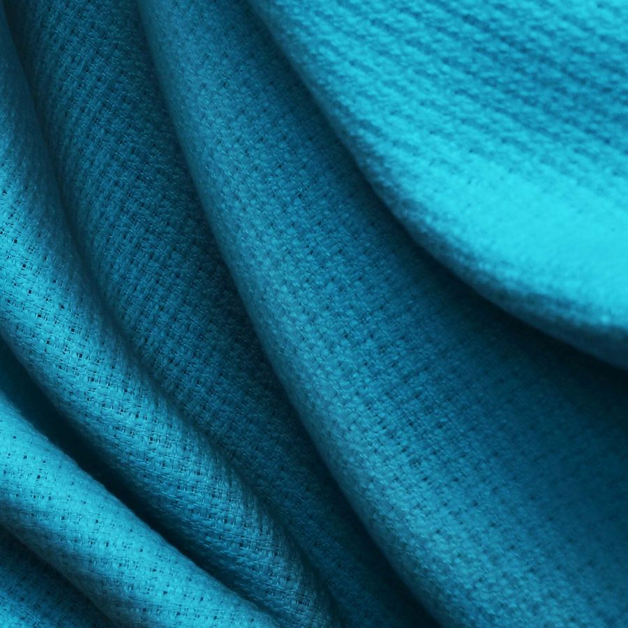 La tela base Tweed - Chanel de 100% poliéster, de 420 gr/m2 y 150 cm de ancho, se presenta con un color liso impreso de Azul Hielo Glacial, con un CMYK de 89 46 32 17. Este color encierra un simbolismo que transmite serenidad, calma y frescura, evocando el hielo y las aguas profundas. En combinación con otros colores, como el blanco, negro, gris y tonalidades cálidas como amarillos, naranjas y dorados, proporciona un balance y elegancia. Para destacar, esta tela está impresa con color liso a una sola cara por impresión digital textil, no tintada de hilos, lo que permite un acabado más homogéneo y vibrante en el color.