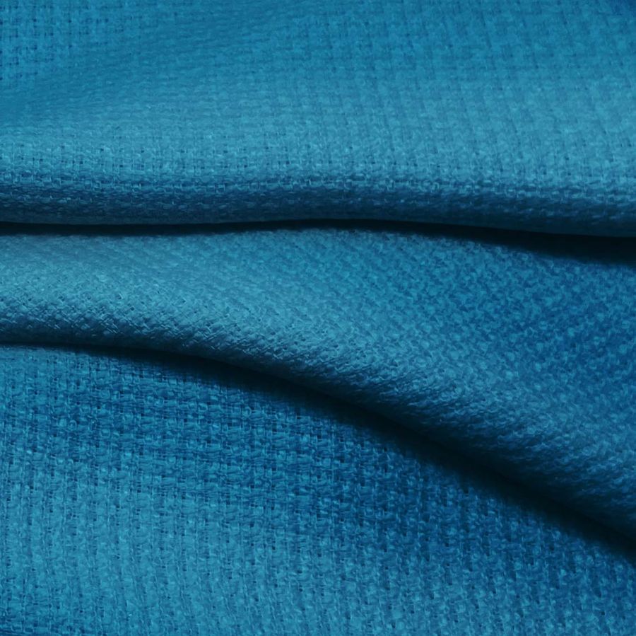 La tela base de este tejido es el Tweed - Chanel, compuesta al 100% de poliéster, con un gramaje de 420 gr/m2 y una anchura de 150 cm. El color liso impreso es de tonalidades Azul SteelBlue, con un CMYK de 91 51 27 12 y está impreso por una sola cara mediante tecnología de sublimación para poliéster. En cuanto a las características, destaca por su textura rígida al tacto.