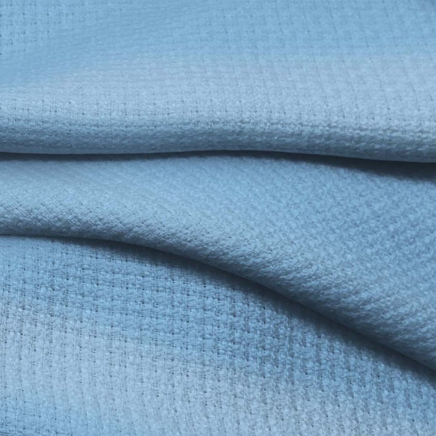 La tela base Tweed - Chanel de 100% POLIÉSTER está impresa con un color liso Azul Iceberg, con una mezcla de cian, magenta y amarillo, sin incorporar tinta negra en su diseño. Este color representa la calma y la serenidad, evocando la sensación del agua y el hielo. Combina armoniosamente con tonalidades como el blanco, gris, beige y negro, creando un aspecto clásico y elegante. Cabe destacar que este tejido está impreso en una sola cara por impresión digital textil.
