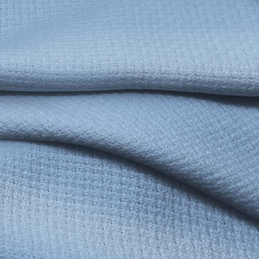 En resumen, el Tweed Chanel impreso con un color liso Azul/Azul violeta claro tiene un simbolismo de calma y serenidad. Su tejido rígido con tacto suave se utiliza en una variedad de aplicaciones en moda tanto para hombre como para mujer, así como en decoración del hogar. La tecnología de impresión utilizada es la sublimación de poliéster, lo que da como resultado una imagen de alta resolución que no pierde calidad con el paso del tiempo.