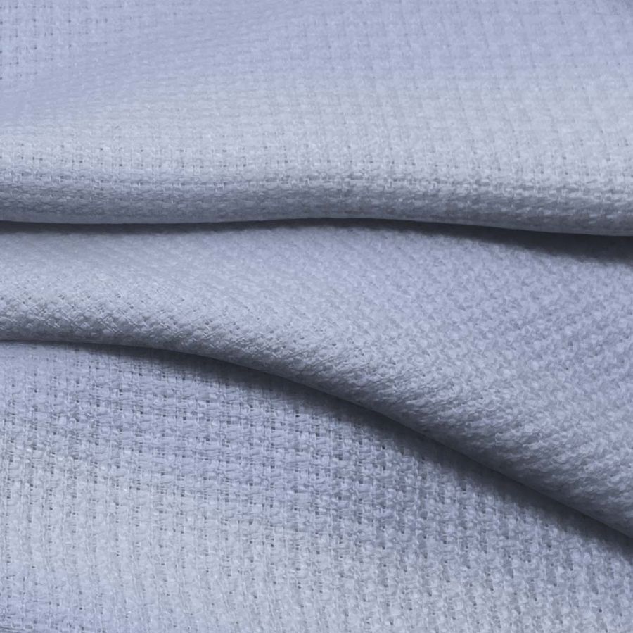 La tela base del tejido Tweed - Chanel es un tweed compuesto al 100% por poliéster con un gramaje de 420 gr/m2 y un ancho de 150 cm. Su color liso impreso es un tono de azul conocido como Angel Azul, que se obtiene con una combinación de tintas cian, magenta y amarilla en un porcentaje del 36-23-4 en cada una de ellas.