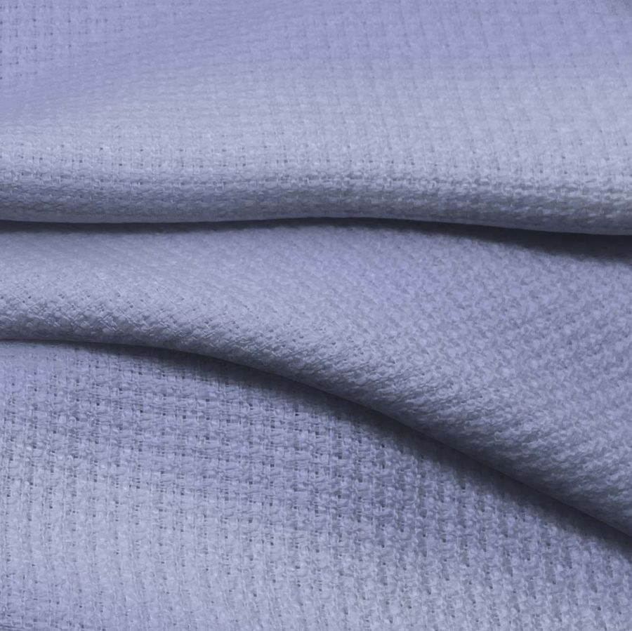La tela base de este tejido es el Tweed-Chanel, compuesta por 100% poliéster con un gramaje de 420 gr/m2 y un ancho de 150 cm. El color liso impreso es un morado profundo, inspirado en el arbusto de salvia púrpura. Los valores del CMYK son 45 34 5 0, reflejando una tonalidad vibrante y elegante. Combina especialmente bien con tonos grises, beiges y crudos.