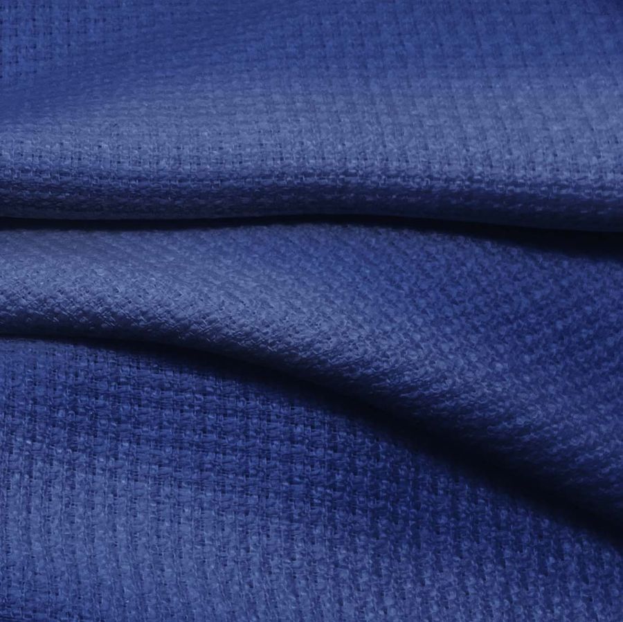 La tela base, Tweed - Chanel, es un tejido de tipo tweed con una composición 100% poliéster, con un gramaje de 420 gr/m2 y un ancho de tela de 150 cm. La tela tiene un color liso impreso en azul lapislázuli, con un CMYK de 100 87 27 8. Este color evoca la profundidad y el misterio del océano, lo que lo convierte en un tono elegante y sofisticado. El azul lapislázuli combina perfectamente con colores similares como el azul marino y el gris oscuro, así como con tonos más claros como el blanco y el beige.
