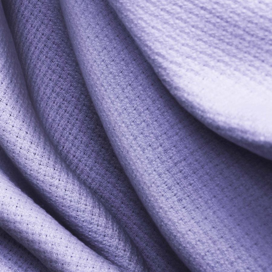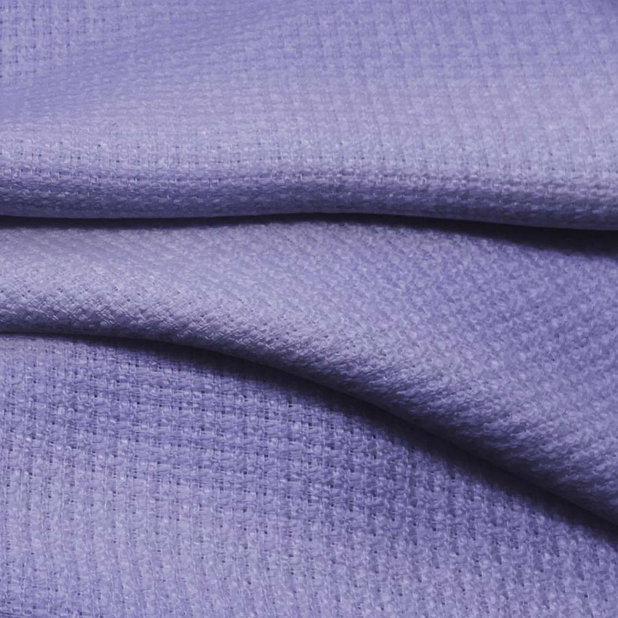 La tela base es el Tweed - Chanel, compuesta por un 100% de poliéster con un peso de 420 gr/m2 y un ancho de 150 cm. El color liso impreso es un arbusto de salvia púrpura, con una tinta cian de 56, una tinta magenta de 53, una tinta amarilla de 6 y una tinta negra de 0, formando un CMYK de 56 53 6 0. Este color secundario transmite un aire sofisticado y elegante, sugiriendo un toque femenino y chic. Combina perfectamente con otros tonos pastel, como el rosa, el verde y el celeste. La tela base está impresa con el color liso a una sola cara por impresión digital textil, lo que la hace muy versátil y fácil de usar.