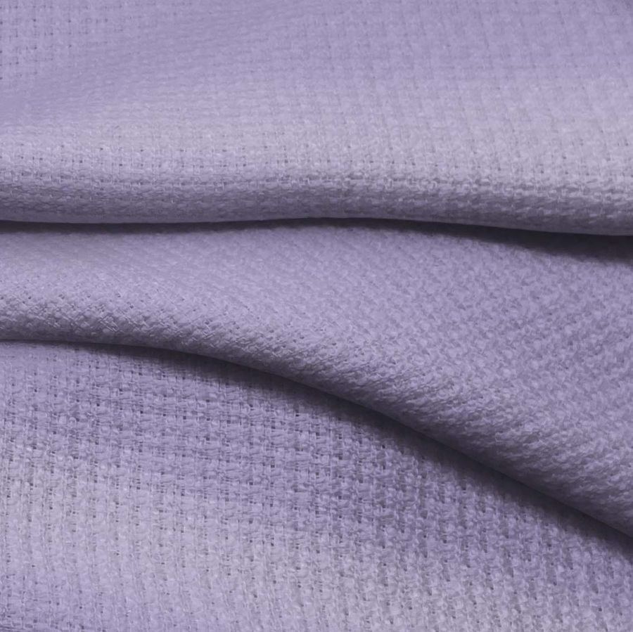 La tela base es Tweed - Chanel, un tejido compuesto en su totalidad por poliéster. El color liso impreso es Morado, con un tono Arbusto de salvia púrpura obtenido a través de una impresión digital textil mediante el uso de cian y magenta en iguales proporciones, y en menor medida yellow. El CMYK del color liso indicado es 40 40 5 0. El color secundario se caracteriza por ser un tono oscuro y vibrante, que transmite elegancia y sofisticación. Además combina de manera perfecta con colores como el verde, el blanco y el negro.