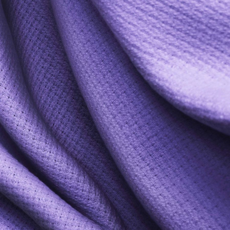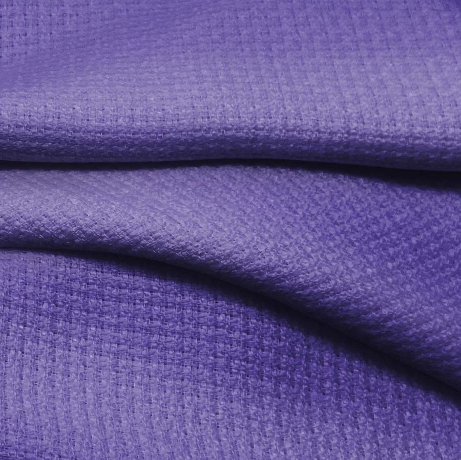 La tela base es Tweed-Chanel, de composición 100% poliéster, 420 gr/m2 y ancho de 150 cm. El color liso impreso es Morado, con una tonalidad de Arbusto de salvia púrpura, basado en la combinación de tinta Cyan: 73, Magenta: 73, Yellow: 7 y Black: 0, resultando en un CMYK de 73 73 7 0. Este color secundario es un tono elegante y sofisticado que combina perfectamente con tonos cálidos y neutros, como el beige, marrón, gris y negro.