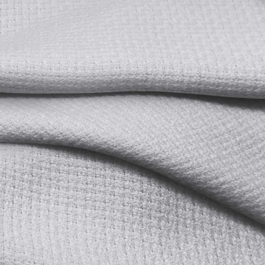 La Tweed - Chanel es una tela de tweed con composición 100% poliéster y un gramaje de 420 gr/m2. Su ancho es de 150 cm y se presenta en un color gris Gainsboro, con un CMYK de 16 11 11 0. Este color es reminiscente de la niebla intensa de las mañanas de otoño, evocando calma y serenidad.