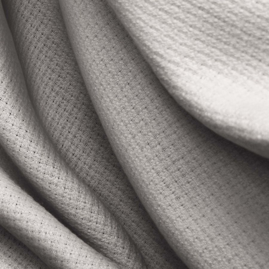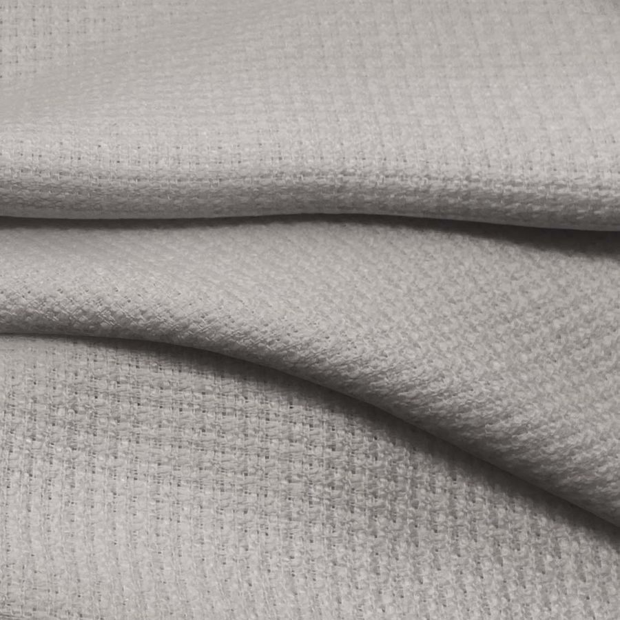 La tela base es un tweed de 420 gr/m2, 100% poliéster, de 150 cm de ancho. El color liso impreso es un gris plata pálido, con un CMYK de 28 25 27 4. Este color se caracteriza por su elegancia y sofisticación, reflejando un estilo moderno y refinado. El gris plata pálido es neutral y combina bien con colores fríos como los azules y los verdes, así como con tonos más cálidos como el rojo y el naranja.
