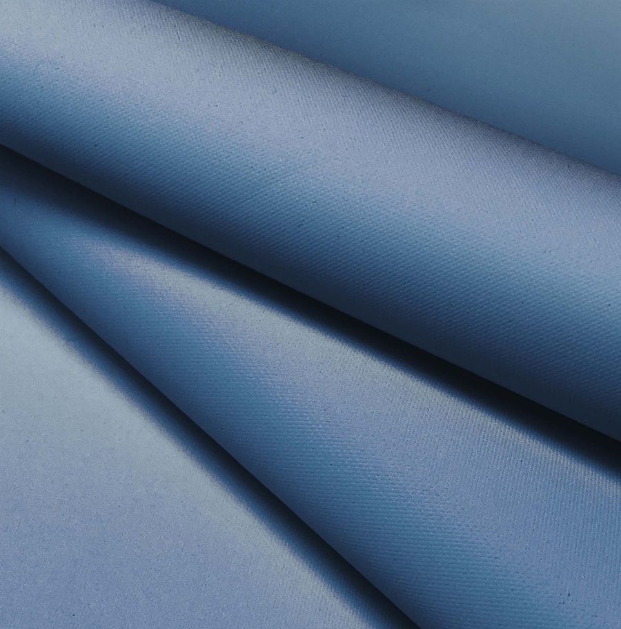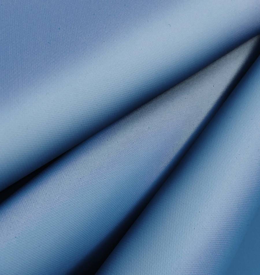 La tela base es la Tela Impermeable - Outdoor, un tejido técnico con composición 100% poliéster, gramaje de 200 gr/m2 y un ancho de 150 cm. Su color liso impreso es un Azul SteelBlue, cuyo CMYK es 68 44 26 9, compuesto por tintas Cyan, Magenta, Yellow y Black. Este color transmite serenidad y confianza, y combina especialmente bien con tonos grises y blancos.