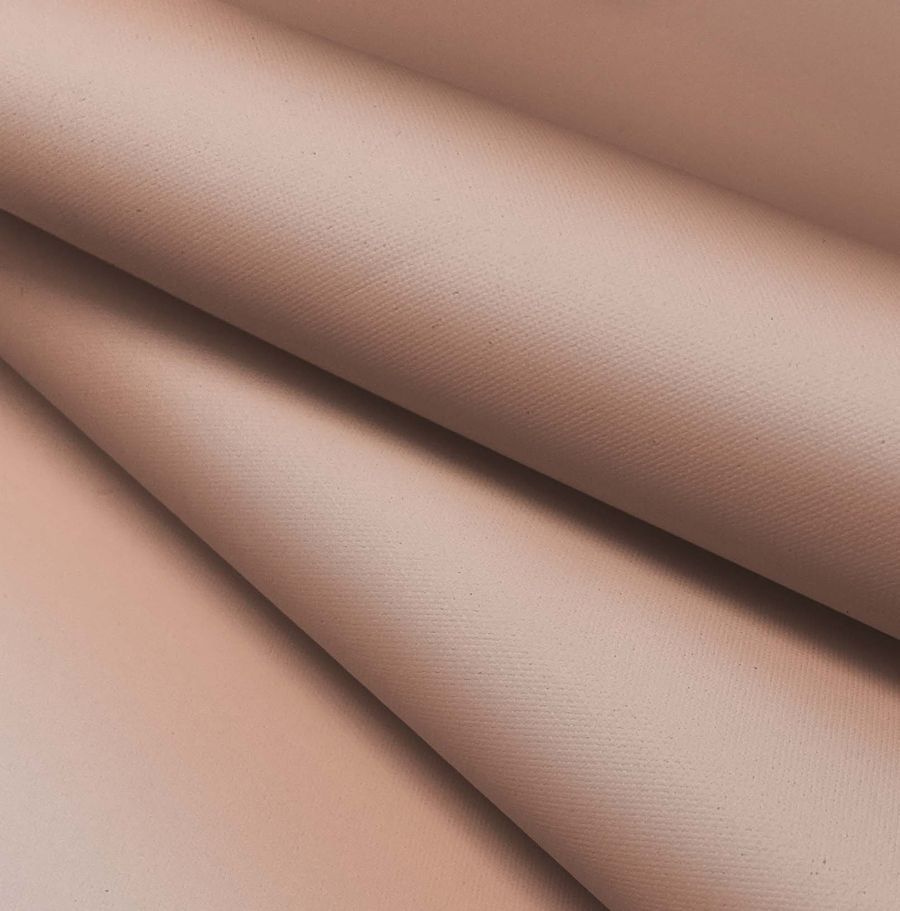 La tela base es la Tela Impermeable - Outdoor, un tejido técnico compuesto al 100% por poliéster, con un gramaje de 200 gr/m2 y un ancho de 150 cm. Su color liso impreso es un naranja cobrizo claro, con valores CMYK de 11 43 44 2. Este color simboliza la vitalidad, la alegría y la energía renovadora, y técnicamente se caracteriza por una textura visual opaca y un tacto granulado y rugoso. Combina especialmente bien con tonos marrones, dorados y grises, lo que hace que sea ideal para su uso en moda y decoración.