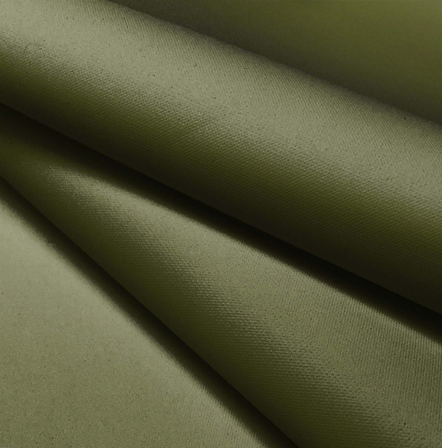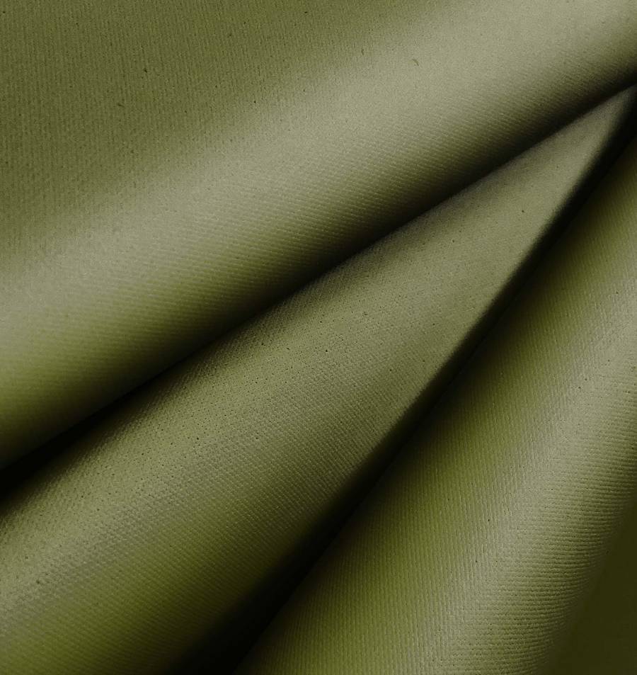 La tela base es la Tela Impermeable - Outdoor, un tejido técnico de poliéster de 200 gr/m2 con un ancho de 150 cm. Su color liso es un verde tierra con un CMYK de 61 45 88 41. Este color secundario simboliza la naturaleza y la tranquilidad, y técnicamente se caracteriza por tener un aspecto opaco y granulado al tacto. Combina particularmente bien con colores cremas, camel o marrones oscuros.