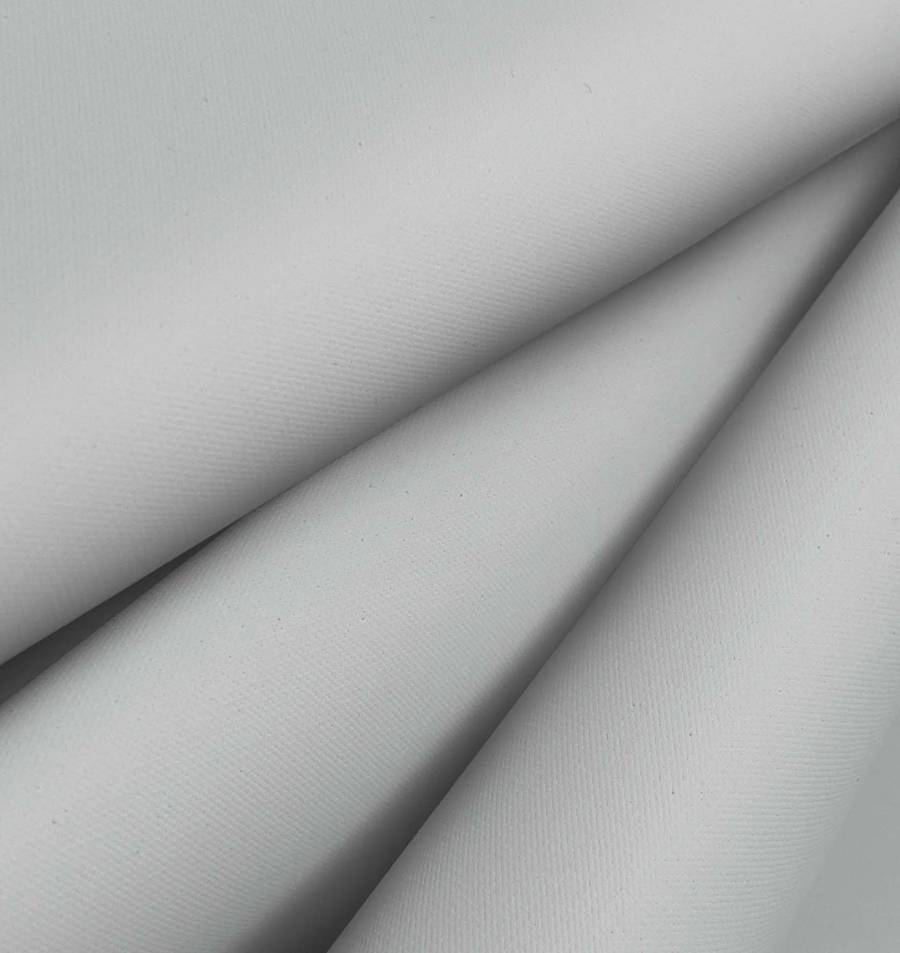 La tela base es la Tela Impermeable - Outdoor, un tejido técnico de 100% poliéster con un gramaje de 200 gr/m2 y un ancho de 150 cm. El color liso impreso es gris plata, con una mezcla de tinta cian, magenta, amarillo y negro (CMYK: 25 16 18 1). Este color se asemeja a un tono plateado brillante con un toque de flexibilidad y suavidad.