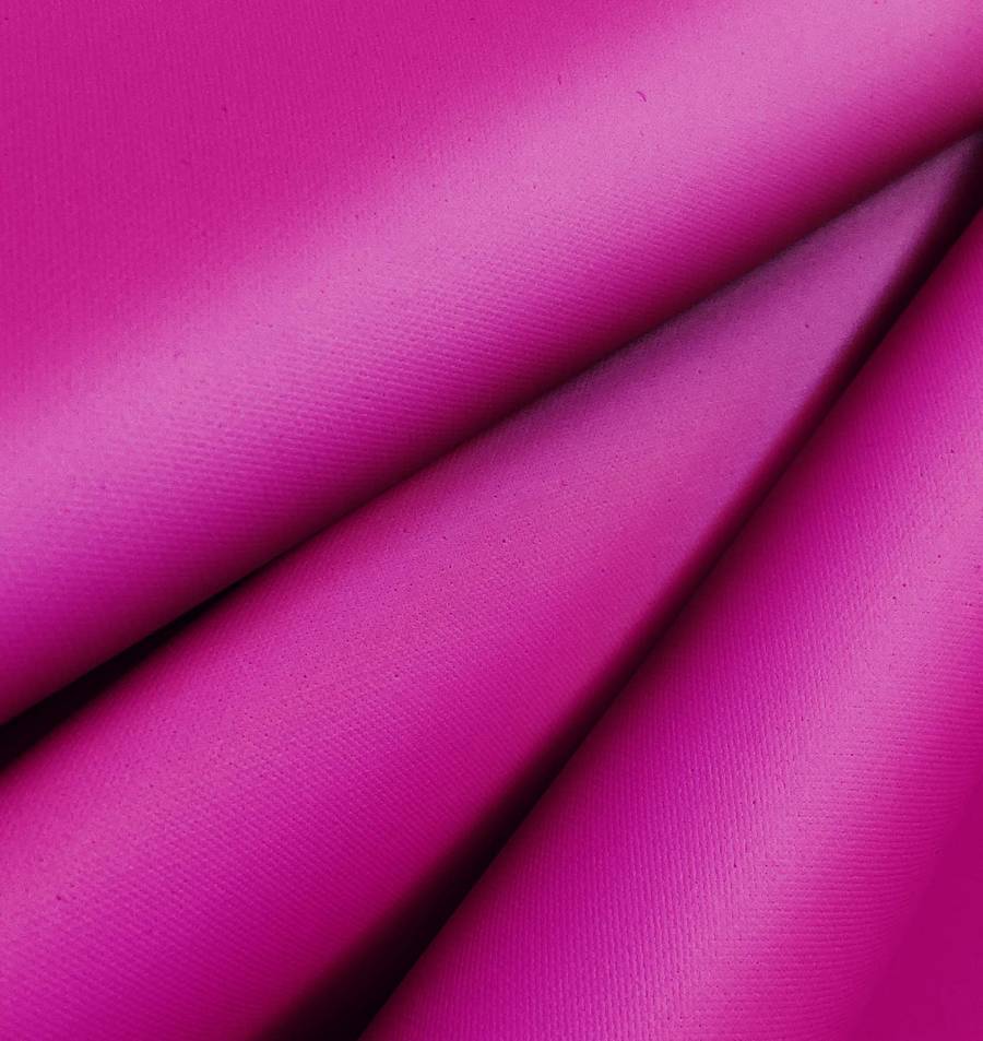La Tela Impermeable - Outdoor es un tejido técnico de 100% poliéster, con un gramaje de 200 gr/m2 y un ancho de 150 cm, que destaca por ser impermeable y tener una textura granulada y rugosa. Este tejido se presenta en un color liso impreso en morado ciruela rosa, con una mezcla CMYK de 35 100 1 1, que destaca por su tonalidad vibrante y llamativa.