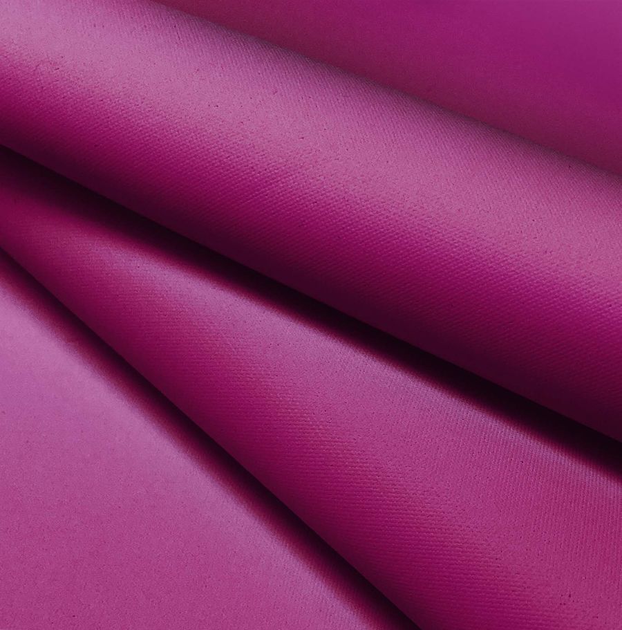 La tela base es la Tela Impermeable - Outdoor, un tejido técnico de 100% poliéster con un gramaje de 200 gr/m2 y un ancho de 150 cm. El color liso impreso es Morado/DarkMagenta, que contiene las tintas Cyan 44, Magenta 100, Yellow 15 y Black 8, representando un CMYK de 44 100 15 8. Este color secundario es una mezcla intensa de rosa y morado oscuro, que transmite un sentido de misterio y sofisticación. Combina bien con otros tonos oscuros como el gris, azul marino y negro, pero también puede aportar contraste con colores brillantes como el amarillo o el verde lima. La tela está impresa con este color liso a una sola cara mediante impresión digital textil.