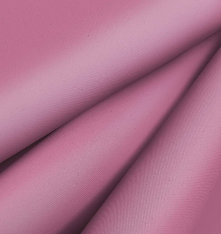 La tela base es la Tela Impermeable - Outdoor, un tejido técnico de 100% poliéster con un gramaje de 200 gr/m2 y un ancho de 150 cm. El color liso impreso es el Rosa Cadillac Rosa, que se especifica con un CMYK de 18 64 18 1 y se imprime mediante sublimación (poliéster). Este color tiene una tonalidad rosa pálida con un matiz brillante y femenino. Combinando perfectamente con colores suaves y pasteles como el blanco, gris, beige y azul claro.