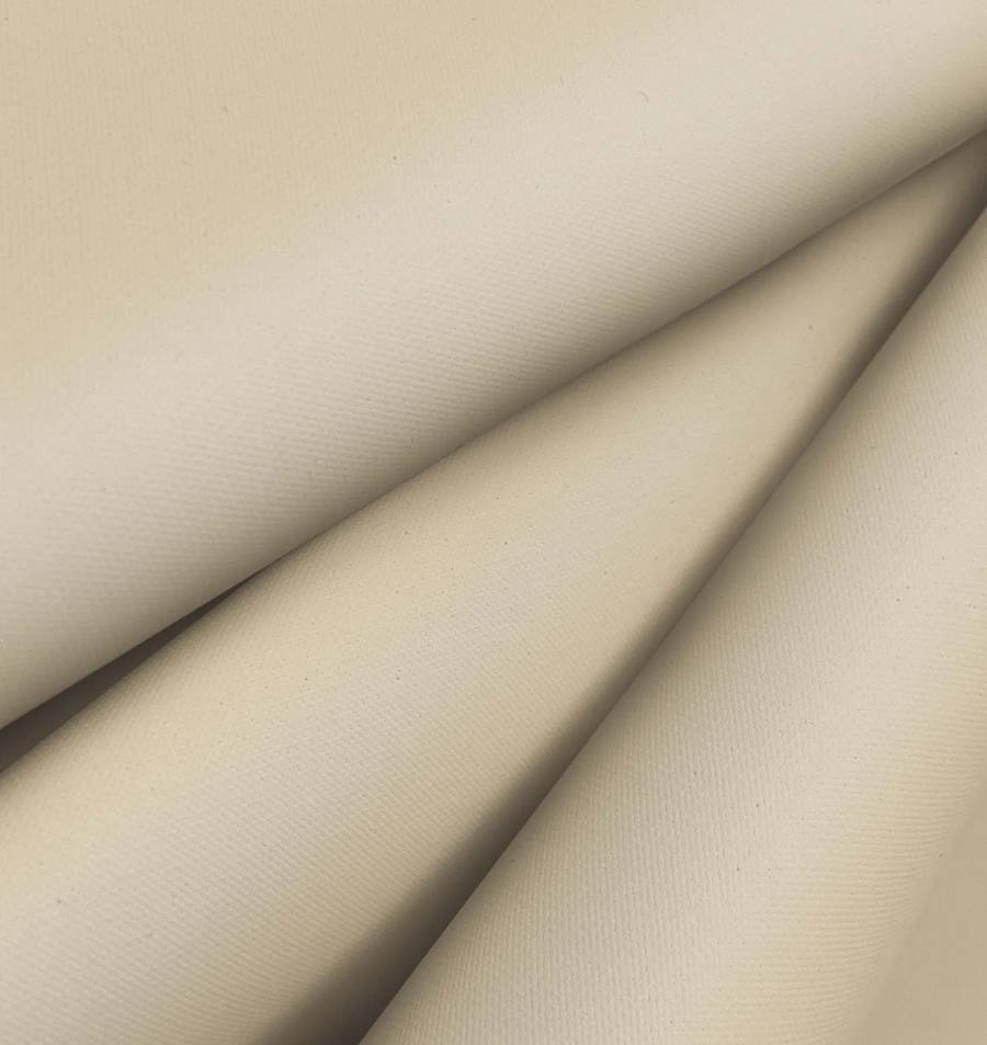 La tela base es la Tela Impermeable - Outdoor, un tejido técnico 100% poliéster con un gramaje de 200 gr/m2 y una anchura de 150 cm. Su acabado impermeable la hace ideal para aplicaciones en moda, deporte y decoración exterior, como gabardinas, chubasqueros, cojines, toldos, manteles y más. El color liso impreso en la tela es Crudo/Mocasín, con un CMYK de 6 15 35 0. Este color combina bien con tonos de beige, marrón y amarillo. Cabe destacar que la tela está impresa a una sola cara mediante impresión digital textil.