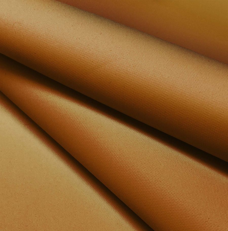 La tela base, Tela Impermeable - Outdoor, es un tejido técnico de 100% poliéster con un gramaje de 200 gr/m2 y un ancho de 150 cm. Su color liso impreso es de un marrón oscuro con tonalidades rojas de suciedad. El CMYK del color es 28 56 100 25 con una tinta cyan baja, una magenta y yellow altas, y una black moderada. El color secundario que se observa en el marrón impreso es el rojo sucio, un tono terroso y oscuro, que refleja pátina y envejecimiento, lo que le otorga una apariencia de vintage y acentúa su rusticidad. Este color secundario combina en particular con los tonos de tierra y ocres, y se integra bien en ambientes rústicos, de estilo industrial o urbano.
