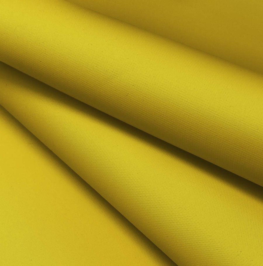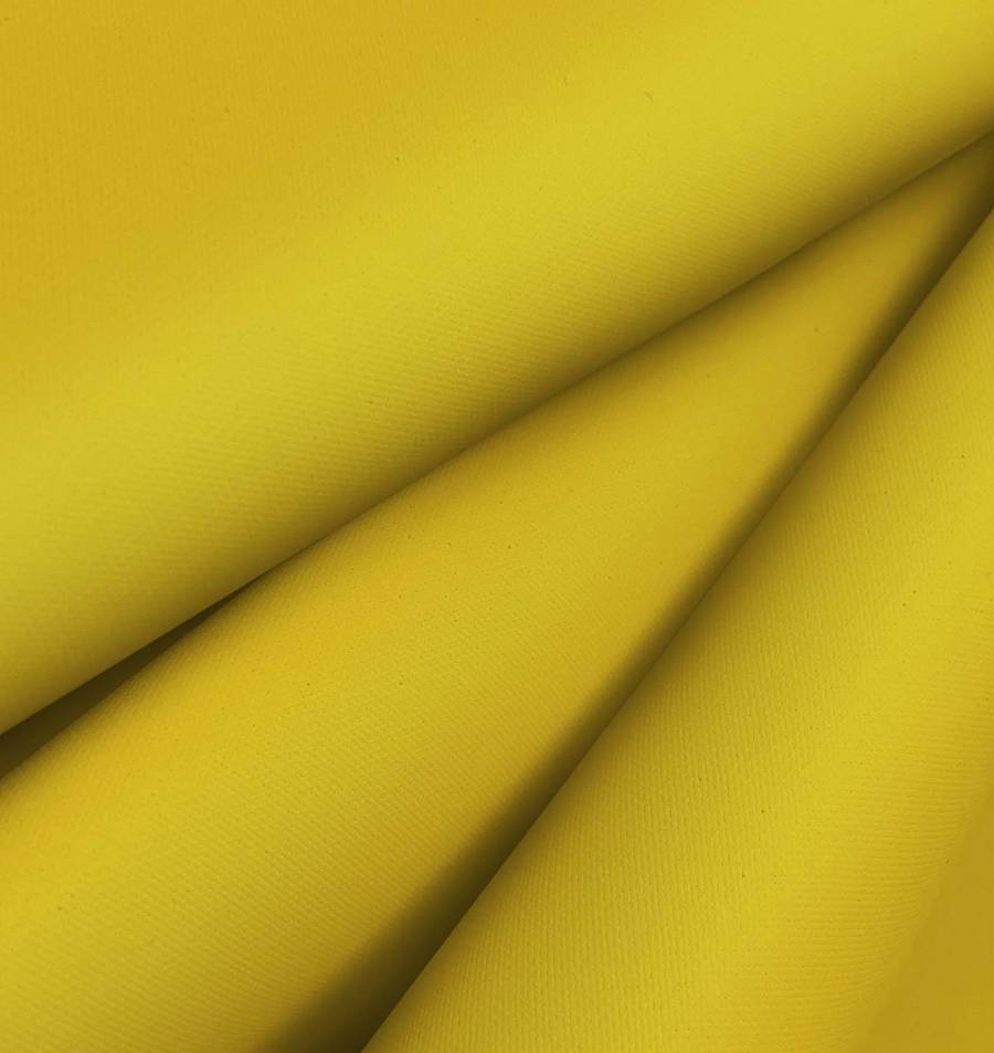 La Tela Impermeable - Outdoor, con un gramaje de 200 gr/m2 y un ancho de 150 cm, está compuesta por 100% poliéster y es de tipo tejido técnico. El color liso impreso en la tela es un Amarillo Oro naranja, que se logra mediante la combinación de las tintas Cyan (9), Magenta (25), Yellow (91) y Black (1), que resultan en un CMYK de 9 25 91 1. Este color es vibrante y cálido, evocando la energía del sol y la vitalidad de la naturaleza. Combina especialmente bien con tonos neutros como el gris y el blanco, pero también con verdes y rosados suaves.
