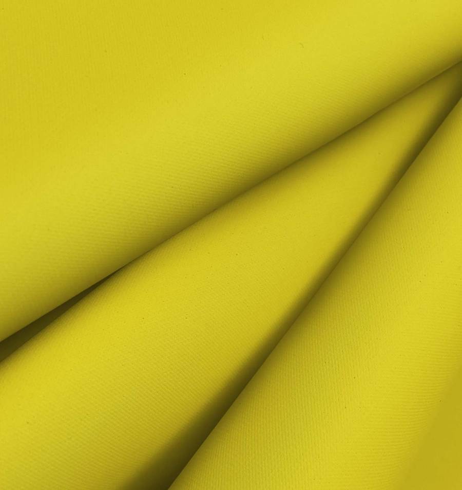 La Tela Impermeable - Outdoor es un tejido técnico de 100% poliéster y 200 gr/m2, con un ancho de 150 cm. El color liso impreso es un amarillo dorado con un CMYK de 7 9 89 0. Este color secundario tiene un granulado y una textura rugosa que le da un aspecto acogedor y cálido. Combina perfectamente con tonos terrosos como el marrón y el verde.