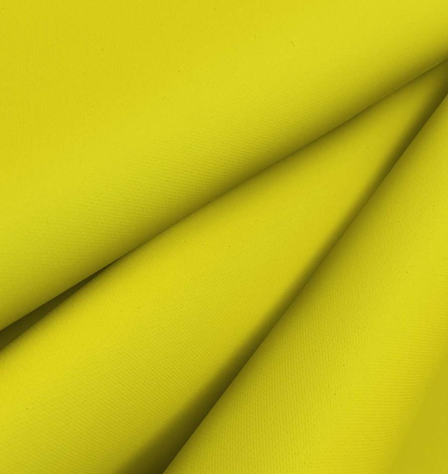 La tela base Tela Impermeable - Outdoor de tejido técnico tiene una composición del 100% poliéster y un gramaje de 200 gr/m2. Su ancho es de 150 cm y es impermeable, con una textura granulada y rugosa, y un acabado opaco. El color liso impreso de esta tela es el amarillo canario, con una tinta cyan de 6, una tinta magenta de 0, una tinta yellow de 89 y una tinta black de 0, lo que da como resultado un CMYK de 6 0 89 0. El amarillo canario es un color vibrante, lleno de energía y vitalidad. Simbólicamente, se asocia con el sol, la alegría y el optimismo. Combinado con tonos cálidos como el rojo o el naranja, crea un ambiente alegre y acogedor. También funciona bien con tonos fríos como el azul o el verde, para crear un contraste armónico.