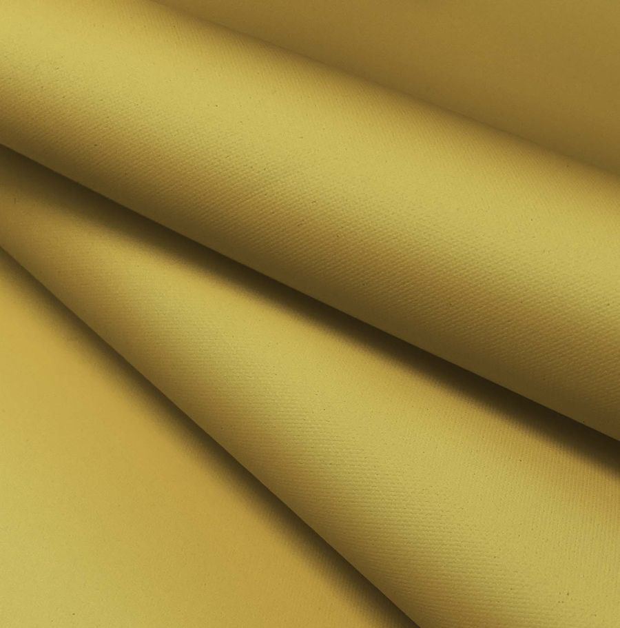 La tela base es la Tela Impermeable - Outdoor, un tejido técnico 100% poliéster de 200 gr/m2. Tiene un ancho de 150 cm y es impermeable gracias a su acabado. El color liso impreso en la tela es Amarillo-Marrón Galleta con un CMYK de 19 34 80 7. Este color secundario tiene un tono amarillo oscuro con matices marrón galleta, lo que evoca sensaciones de calidez y cercanía. Combina especialmente bien con tonos tierra, beige y marrones, generando un ambiente acogedor y apacible.