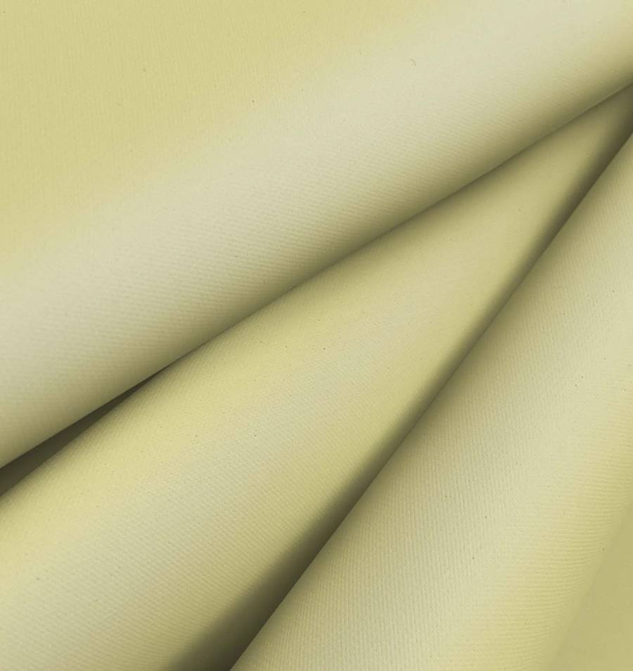 El color liso impreso de este tejido es un tono entre amarillo y caqui, con valores de tinta de Cyan 8, Magenta 2, Yellow 51 y Black 0. Este color es perfecto para complementar otros tonos como marrones y verdes, dando un aspecto natural y cálido a cualquier proyecto. La tela está impresa digitalmente en una sola cara, lo que la hace más duradera que un tejido tintado.