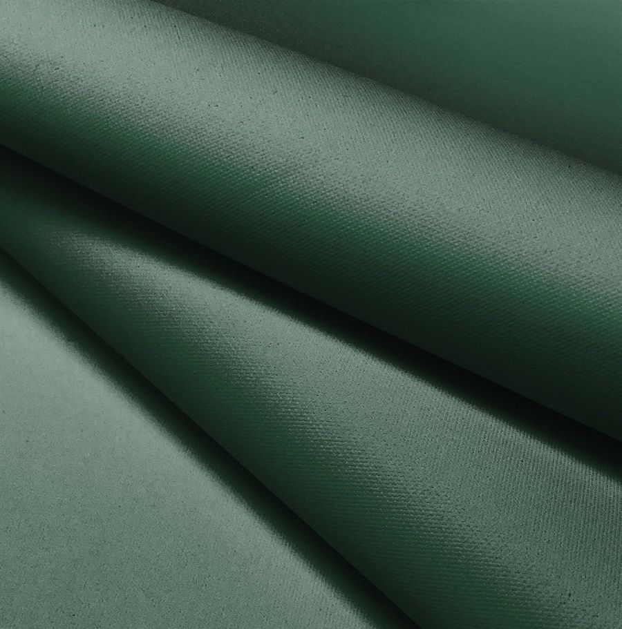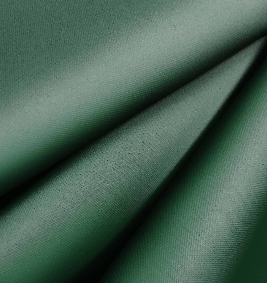 La tela base de este tejido es la tela impermeable outdoor, un tejido técnico con una composición del 100% de poliéster y un gramaje de 200 gr/m2. El color liso impreso es un verde mar profundo que se consigue mediante la utilización de las tintas cian, magenta, yellow y black. El CMYK correspondiente a este color es 75 41 66 38. Este color simboliza la profundidad del mar y la serenidad que éste transmite. Es un color muy sofisticado que combina a la perfección con tonos tierra como el marrón o el beige.