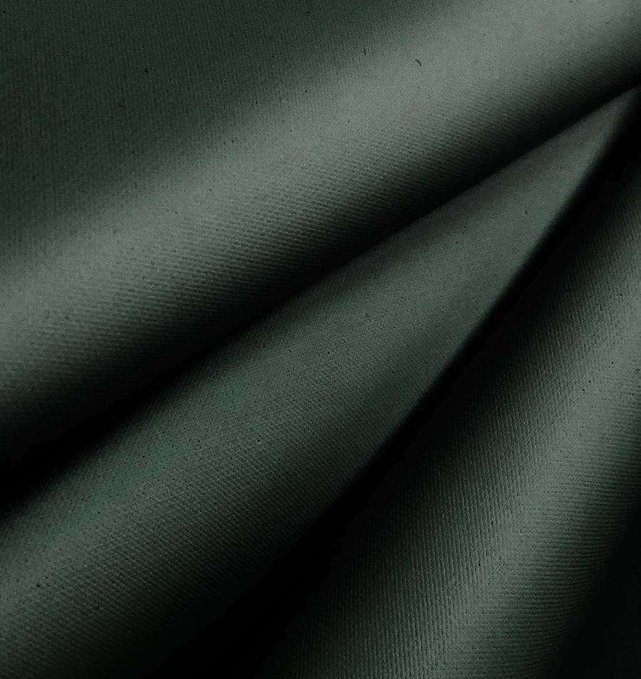 La Tela Impermeable - Outdoor es un tejido técnico compuesto al 100% de poliéster, con un gramaje de 200gr/m2 y un ancho de 150cm. Su acabado es impermeable, con textura granulada, rugosa y opaca. El color liso impreso es un verde bosque oscuro, cuyo CMYK es 85 57 78 76. Este color transmite una sensación de calma y frescura en contacto con la naturaleza. Es un color que combina bien con otros colores tierra y neutros, como el marrón, gris y beige.