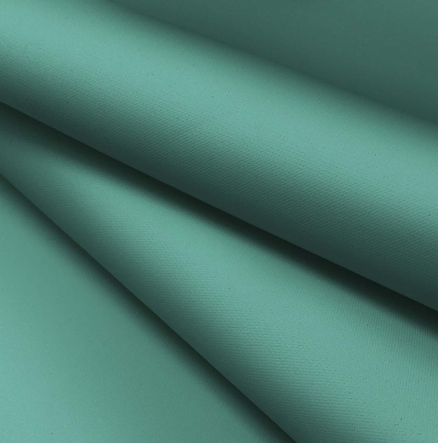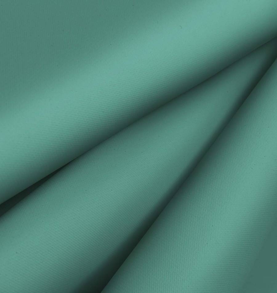La tela base es la Tela Impermeable - Outdoor, de tipo tejido técnico compuesta por 100% poliéster, con un gramaje de 200 gr/m2 y un ancho de 150 cm. El color liso impreso es un verde menta oscuro cuyos atributos de tinta son: Cyan 70, Magenta 28, Yellow 54 y Black 11. Este color se caracteriza por su suavidad, elegancia y ser ideal para la decoración de exteriores. Combinado con otros colores, podemos obtener tonalidades cálidas y suaves, como con el beige, el blanco o el gris claro.